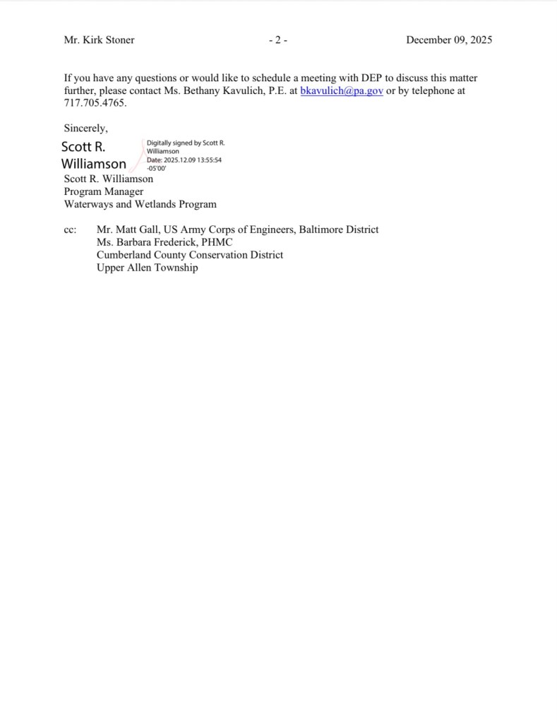 Karen has toured the bridge several times and will vote with Eric and Phil at the January 5, 2026 Upper Allen Commissioners meeting to assume ownership of the bridge from Cumberland and York County.