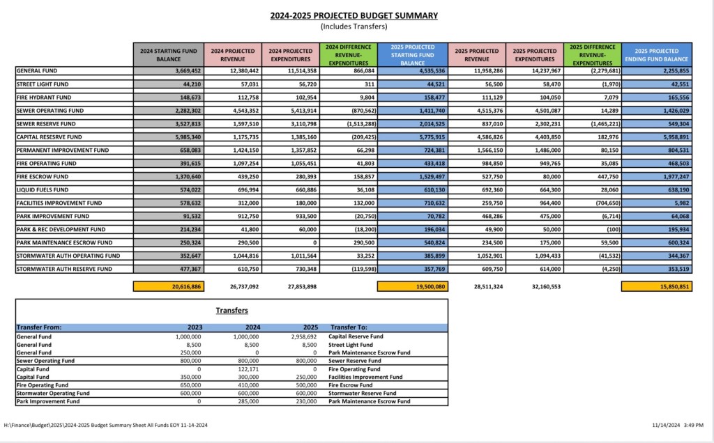 There is money in the budget that will not be spent such as $1.5 million for sewer which was subsequently scaled back to $700,000.