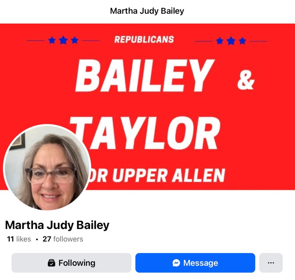 I also want to express my strong support for my running mate, M. Judy Bailey, on the Republican primary ticket. Judy is a dedicated advocate for transparency and a resident-first approach to local government. With extensive experience in conservation, land use, grants, and municipal planning, she brings a wealth of knowledge, integrity, and a strong bipartisan, issue-focused perspective.