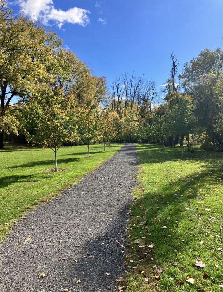 Yours truly asked for a path to be mowed which roughly follows the uncompleted portion of the paved “loop trail”. Look for the mowed path as it allows visitors to see more of the site and hopefully think about whether the various roads, features, etc. shown in the latest concept plan make sense. Carrying along a copy of the latest plan would be helpful.