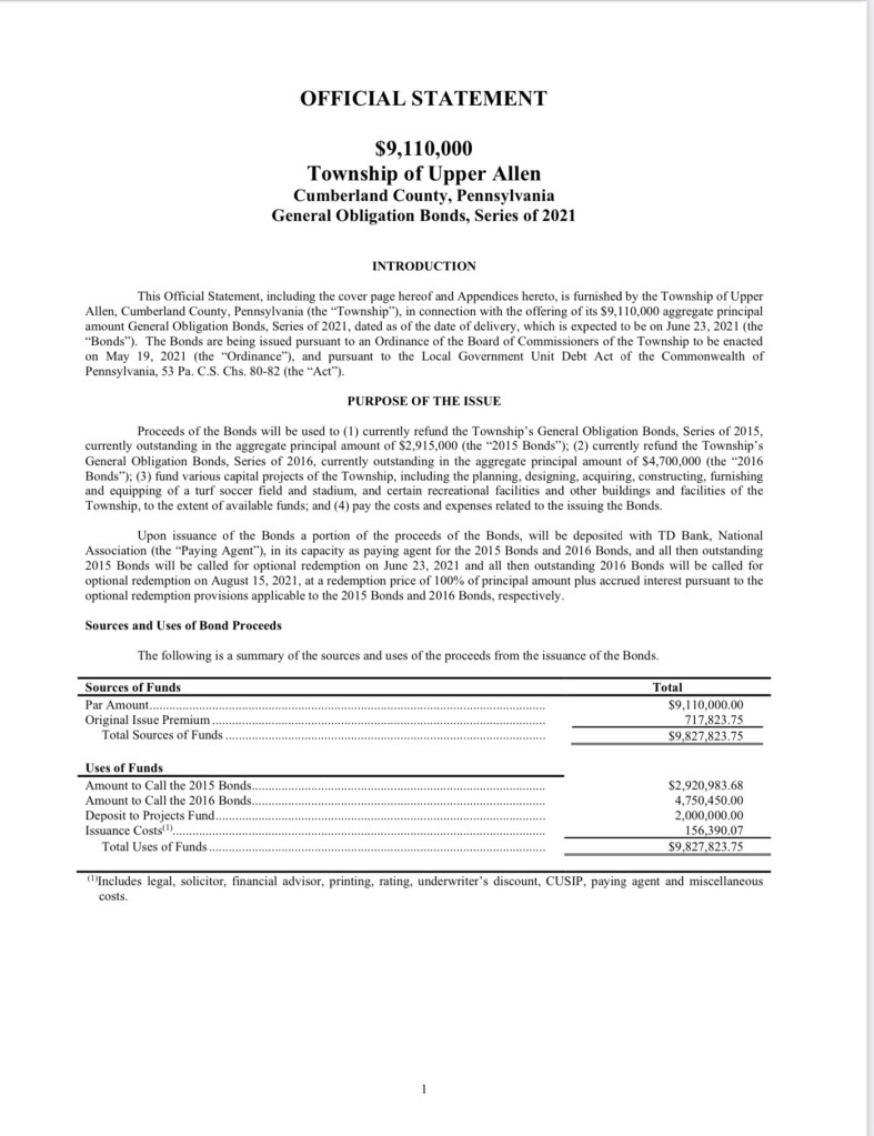 As with the 2017 re-zoning of the township, few people are aware that Upper Allen included $2 million for a “turf soccer field and stadium” in its last bond issue. Here is some background on this: