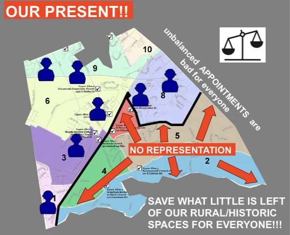 Some may recall that when Ginnie Anderson resigned; Phil and Eric nominated Jim Paulus and Barry Strock (both from Precinct 6 – if that is truly important to anyone). This would have provided the Board with needed AG and land preservation perspective, but neither Ken Martin (Precinct 2) or Rick Castranio (Precinct 1) would support either of Upper Allen’s best known farmers. This is telling.