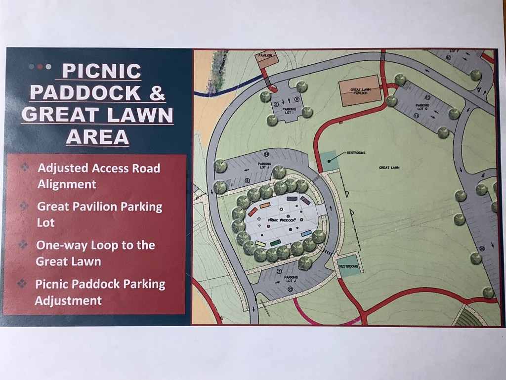 What you see in the photo is now slated to be paved with 8 ft. wide trails and emergency access road. The paddock in the far background is slated to become a 350 person pavilion unless the C.S. Davidson Master Plan gets altered.