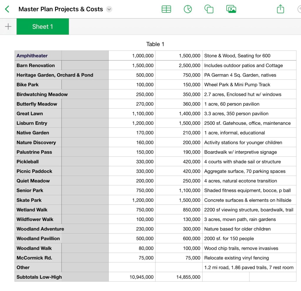 One can see how UAT will easily spend $4 million just to establish infrastructure under the present course of over development. This would be before any money is spent on features such as renovation of the Barn or Senior Park. This ties in with previous estimates of a potential $20+ million cost for the entire park. Something has to give. It’s not too late to adopt a more passive design approach and save $ millions.