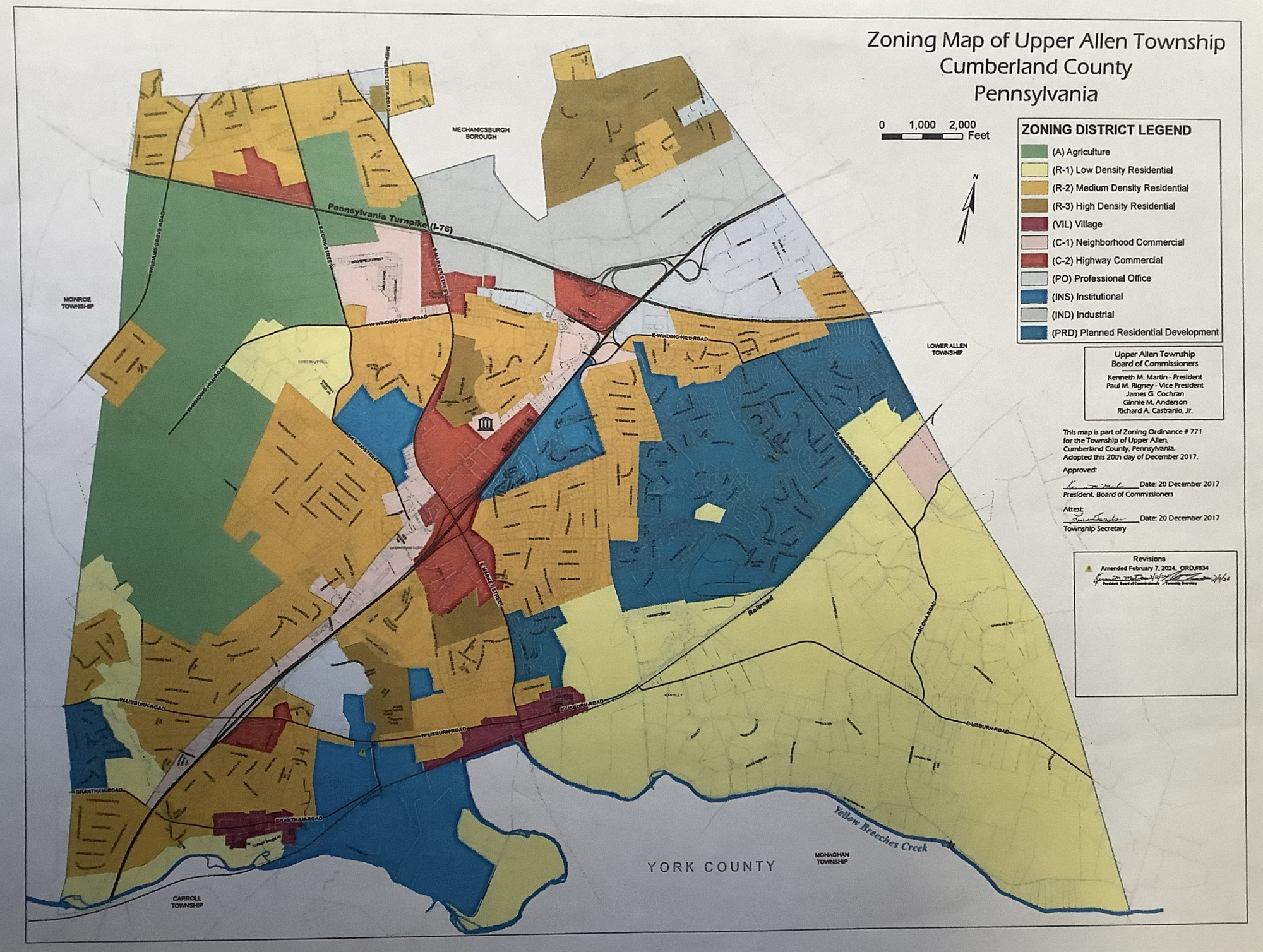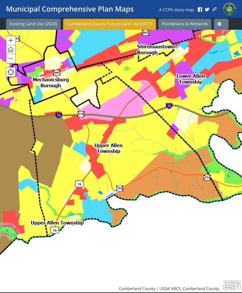 On August 20, 2025, the Upper Allen Township Commissioners voted 4-1 to recommend changes to the Cumberland County Future Land Use (FLU) Map as adopted by the Cumberland County Commissioners on December 19, 2024. This map is part of the County’s new Comprehensive Plan. About 350 acres will now be changed from Suburban (back) to Rural. See full post under Development and Future Land Use.