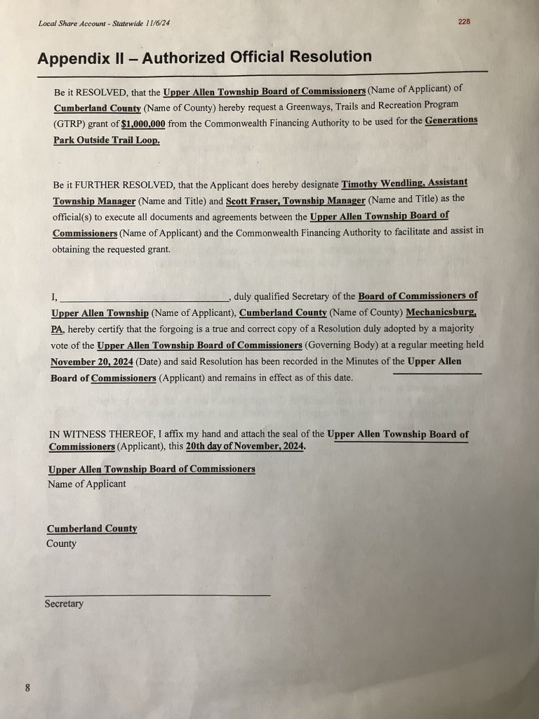 Special thanks to Cumberland and York County for their continued patience and understanding regarding changes in Upper Allen’s Board of Commissioners.